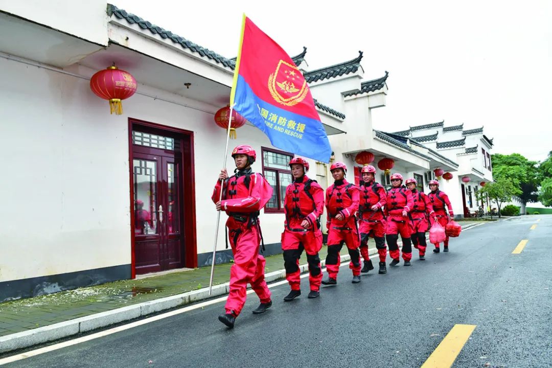 消防隊(duì)員搶險(xiǎn)救援途中