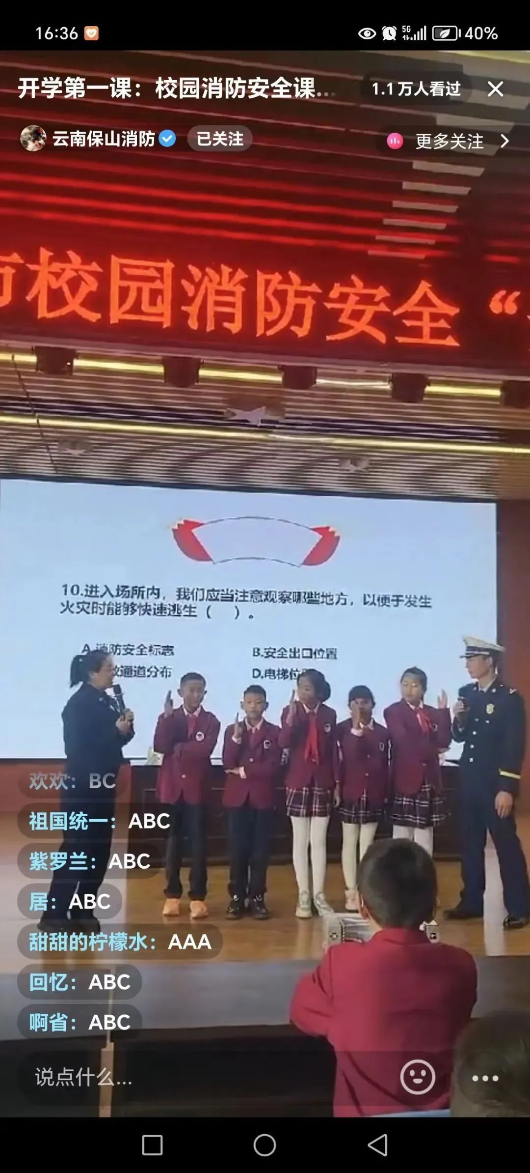 新學期伊始為進一步做好校園消防安全工作近期,全省各級消防救援隊伍持續(xù)開展校園消防安全宣傳活動集中排查校園消防安全隱患為師生創(chuàng)造了一個安全、穩(wěn)定、和諧的育人環(huán)境保山網(wǎng)絡直播開啟第一課保山市消防救援支隊聯(lián)合市教育體育局通過抖音、快手、微信視頻號等新媒體平臺,開展了校園消防安全“開學第一課”網(wǎng)絡直播活動,通過對廣大師生和家長進行“云教學”“云互動”,大力科普消防安全常識,提高自防自救能力。